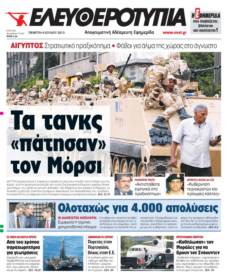 Το πρωτοσέλιδο της σημερινής Ελευθεροτυπίας