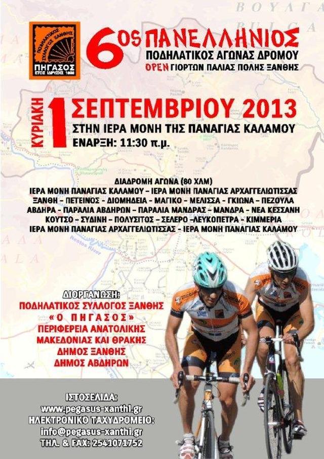 Στα πλαίσια των γιορτών Πάλιάς Ξάνθης ο "Πήγασος" διοργανώνει τον 6ο Πανελλήνιο Ποδηλατικό αγώνα